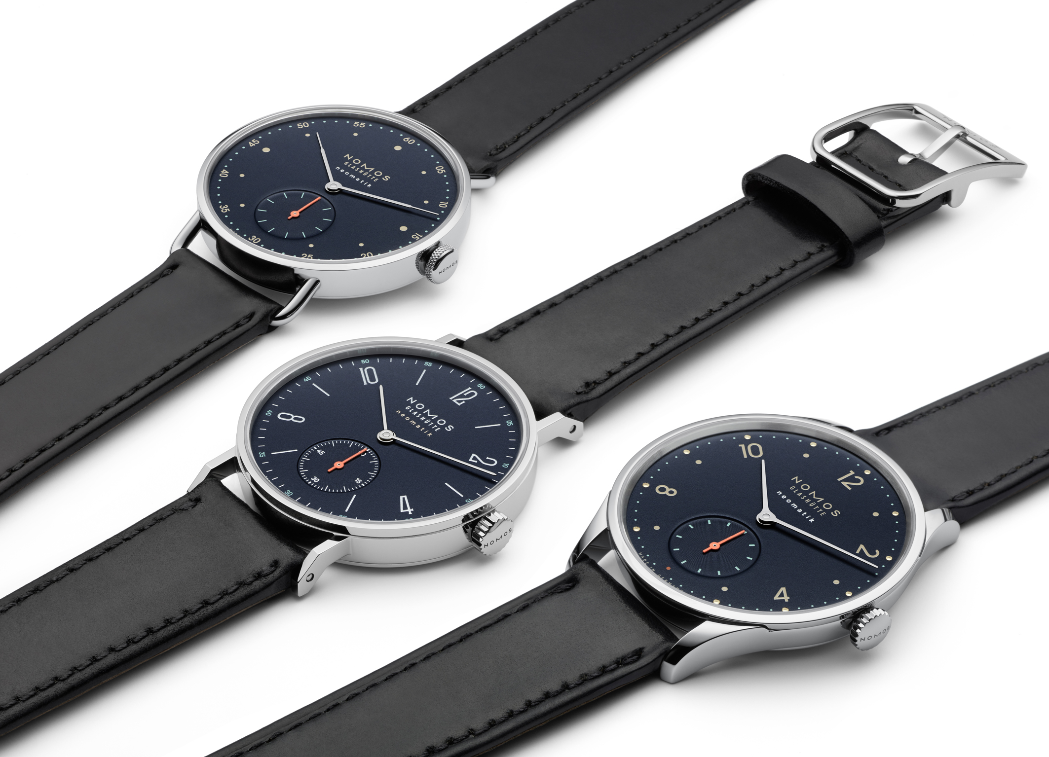 The slender build give the watch a sleek look and will slide easily under the cuff of a shirt.These new models will be in stores this month … time to start checking boxes off your holiday shopping list. Retail prices: Tangente neomatik nachtblau: $3,580; Minimatik nachtblau, $3,800;