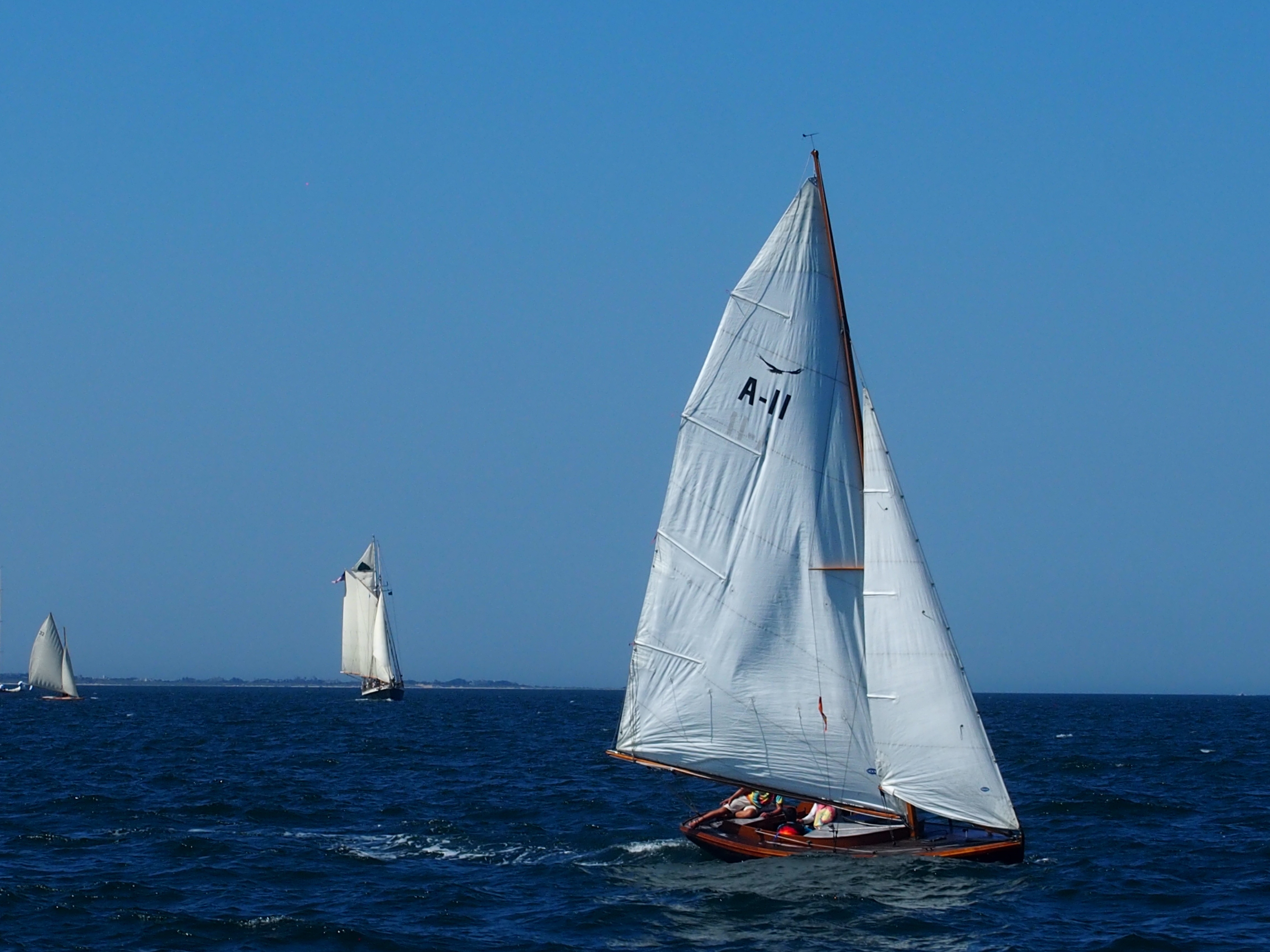 For the 45th annual Opera House Cup Regatta, where all-wooden single-hulled classic boats compete, 65 boats participated in this oldest US wooden boat regatta. With more than 10 knots of wind, the course was set as a 20.3 nautical mile race off the island on Nantucket Sound, wherein we would sail incredibly close to Brandt Point and very nearby a shallow shoal.