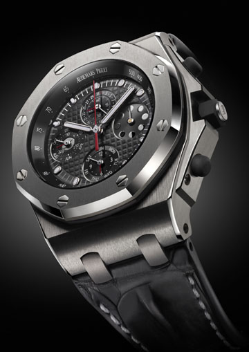 Taking a closer look at powerful timepieces, our top pick this week is the Royal Oak Offshore Chronograph Perpetual Calendar by Audemars Piguet. This bold watch packs a punch in design, functions and feel. This distinctive watch is impressive in all three of its renditions: platinum with