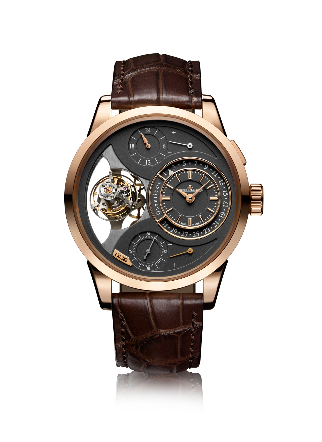 Not a new collection, the Duometre line has been around for some years. This year, however, Jaeger-LeCoultre unveils several new models in rich rose gold with dark gray dials that are visually arresting.