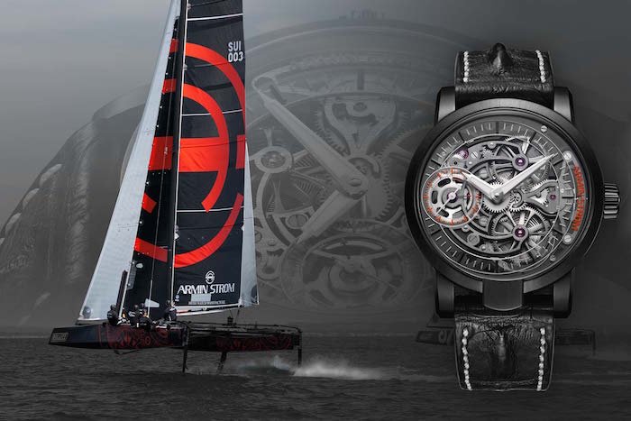 It is interesting to note that one of the key lines for the brand is its Skeleton Pure three-dimensional timepieces with four distinct models, two of which we covered here. The watch is the perfect tie-in with Armin Strom’s sailing venture, now in its second year. In fact, for this season, the Armin Strom sailing team unfurls a new black and orange saiil as it competes in the Great Cup 32 sailing series across Europe.Led by top sailor and brand ambassador Flavio Marazzi, the GC32 catamaran reaches speeds up to 40 knots as it seems to sail out of the water and across the air. The new sail is designed to reflect the Armin Strom Skeleon Pure watch. Detailed and extensive work goes into making quality, well-balanced timepieces, which mirrors the precision and exactness needed to make a successful catamaran. Just as Armin Strom looks to make skeletonized lightweight timepieces, the GC32 catamaran (to be used in the racing series) integrates a strong yet lightweight carbon fiber hull which helps the GC32 really fly across the water.