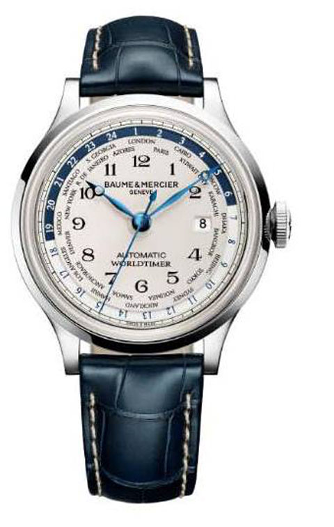 This watch is for the man who loves to travel, wants to know time around the globe with a glance at the wrist, and – let’s be honest – wants to show off a little. At an incredibly affordable price point, Baume & Mercier unveils its Capeland Worldtimer watch in steel ($7,900) or, if you have a few extra bucks, in rose gold ($19,990). Created in a 44mm case, the watch house a self-winding mechanical movement that is visible from a transparent crystal caseback. The watch displays the time simultaneously in 24 time zones and offers the date. To display the local time, the wearer selects the name of the city corresponding to the time zone he is in and then turns the 24-hour ring until the digit representing the current time is facing it. The watch is water resistant to 50 meters.