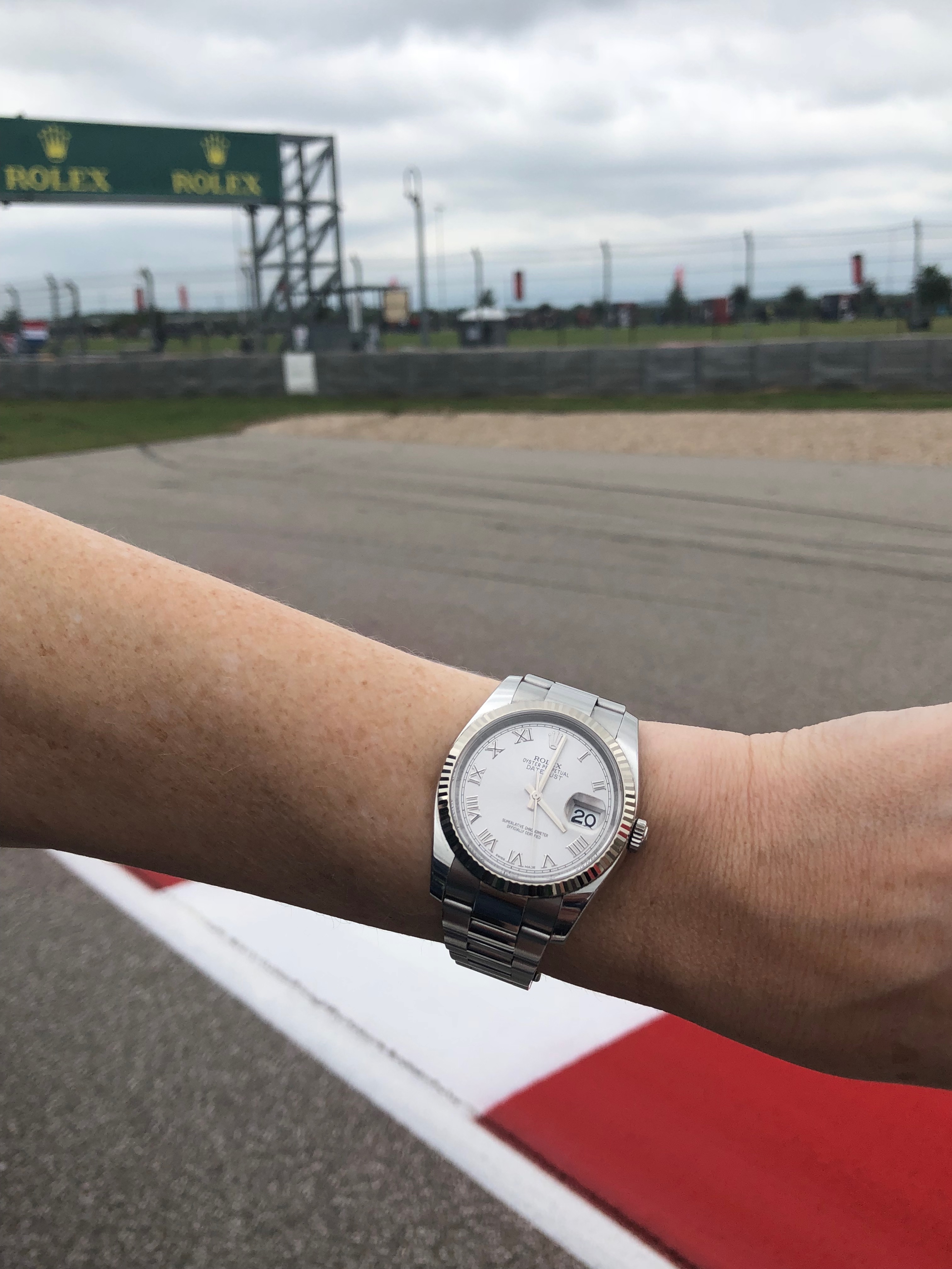 Rolex Oyster Perpetual watch on the track at Circuit of the Americas during F1 racing (Photo: R. Naas)