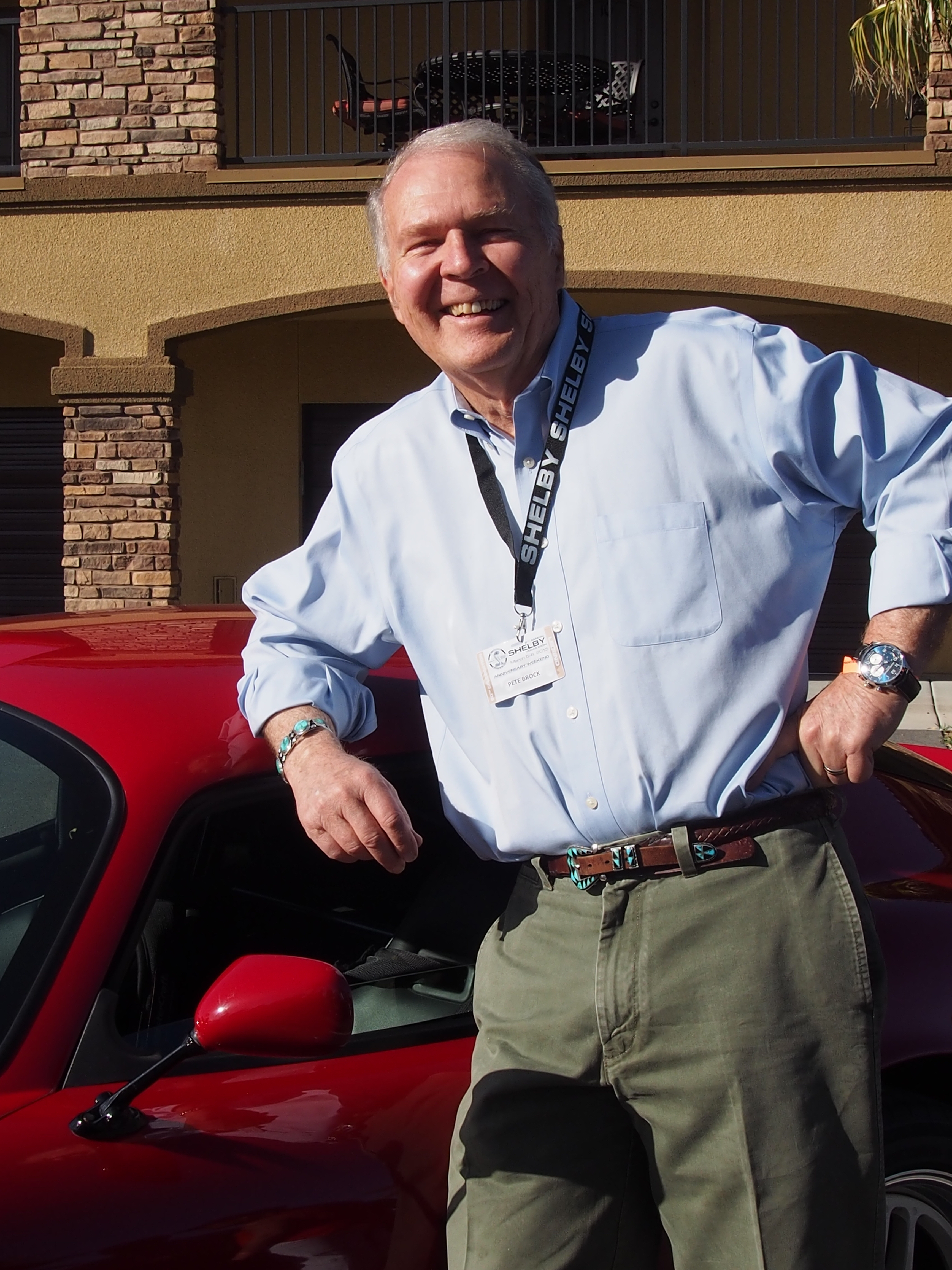 Peter Brock in front of his own Shelby Cobra(R) Daytona Coupe, which he designed and which hit record speeds at Lemans in 1964 and won international acclaim, as well as taking the GT win at 1965 FIA Championships. (Photo: R. Naas)