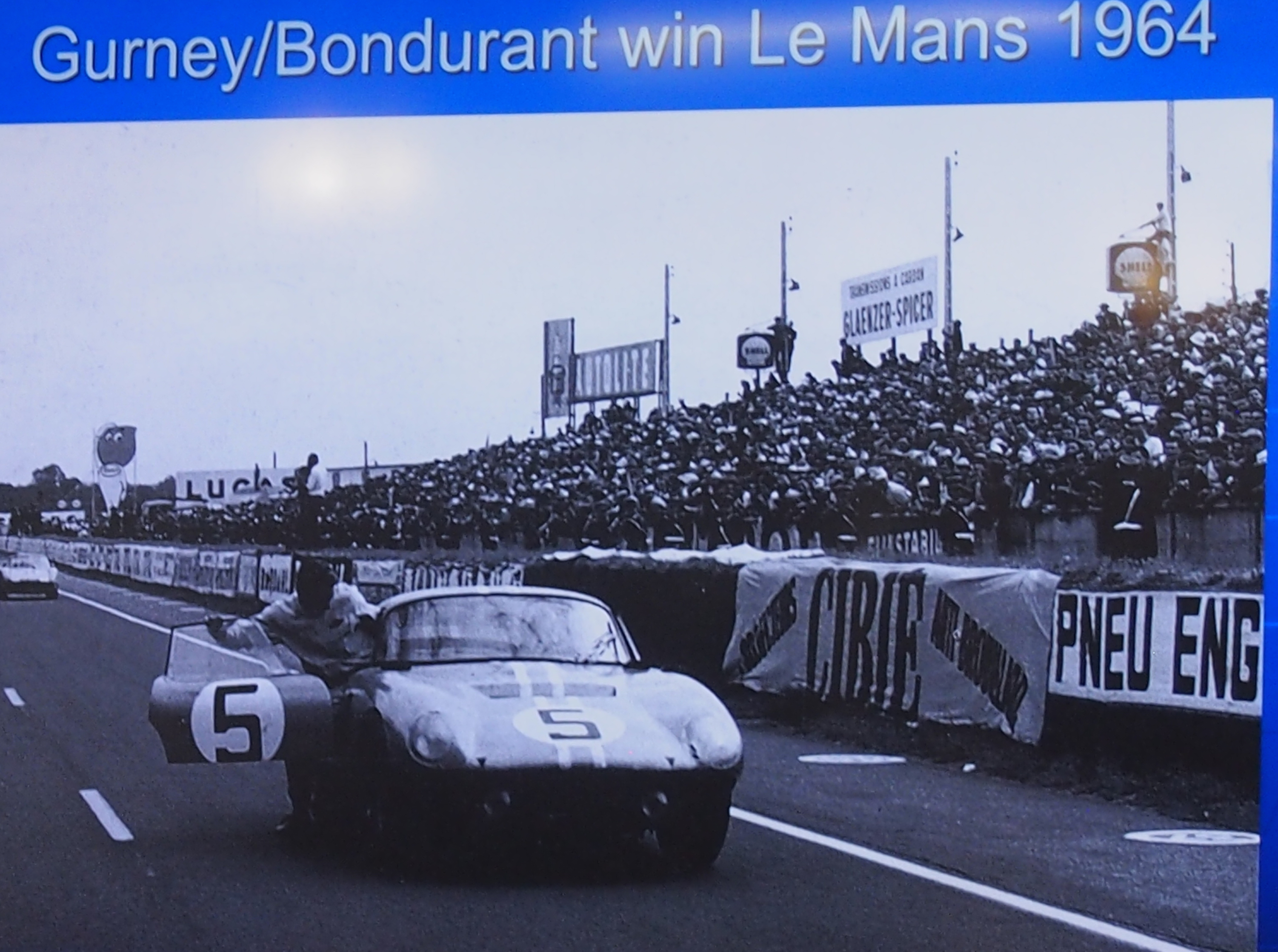 In fact in its first racing season of 1964, the Daytona Coupe was regularly in the winner’s circle. Bob Bondurant (whom I have also had the privilege of meeting) and Dan Gurney drove a Shelby Cobra Daytona Coupe (CSX2299) to the win at Le Mans in 1964 and a year later, the Daytona Coupe became the first American winner of the GT class World Sportscar Championship on July 4,1965. Later that year the CSX2287 set world speed records at the Bonneville Salt Flats thanks to its unparalleled performance stemming from the aerodynamic design of curved body, flat roof and chopped tail.