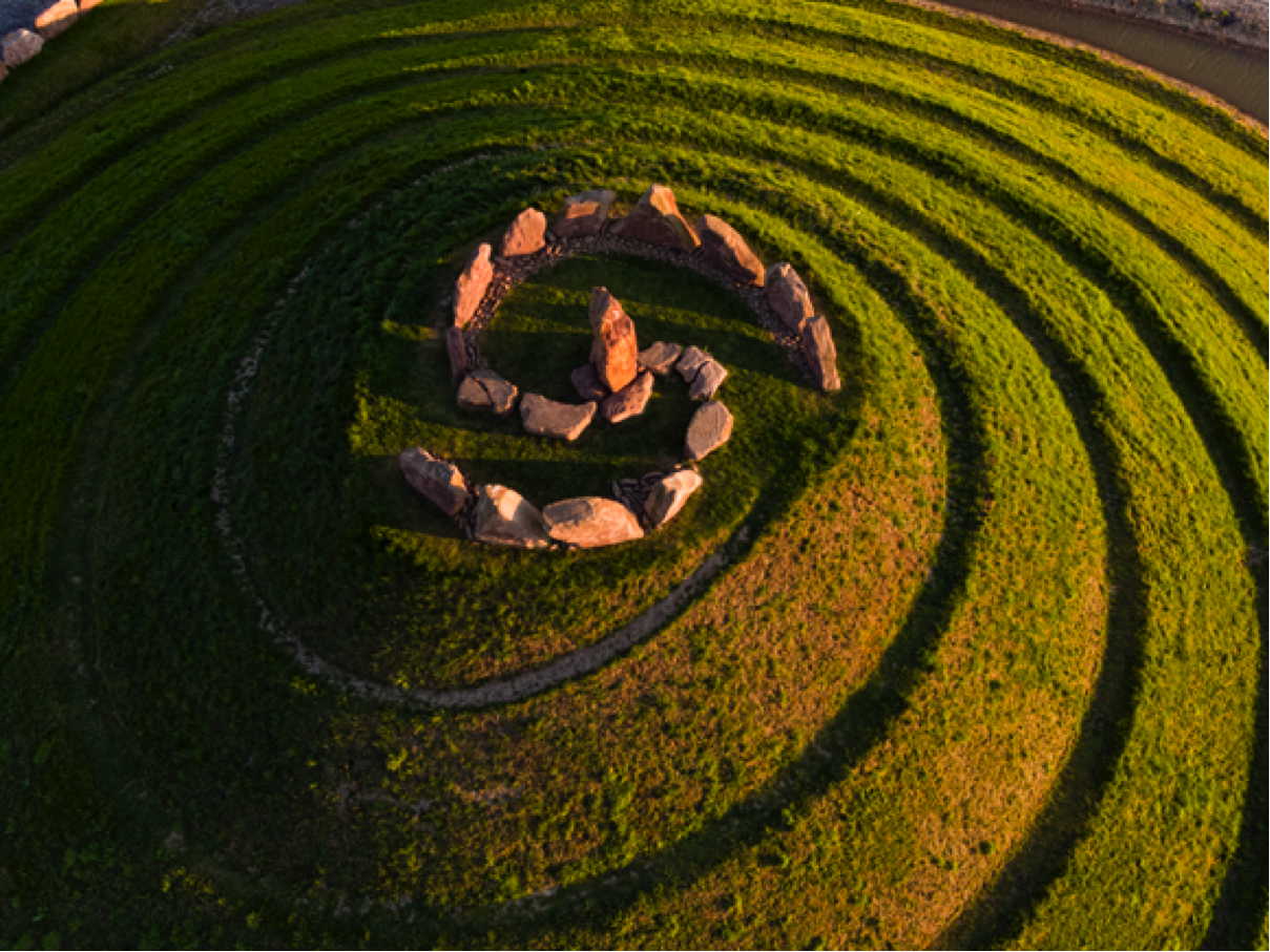 High in the hills of the Dumfries region of Scotland lies the Crawick Multiverse site, wherein landscape artist Charles Jenks has transformed a former open coal mine into a landscape haven. The ecology of the site and the monoliths found there served as the inspiration for this transformation of taking from the Earth to giving back. McCurry’s perspective on this man-made site,”I was previously unaware of this location, and pleasantly surprised by its ancient mystique despite being a new installation. These man-made formations typify Scotland’s great history of similar formations whose purpose are still unknown to us today. There is a cosmic feeling evoked by these structures.”