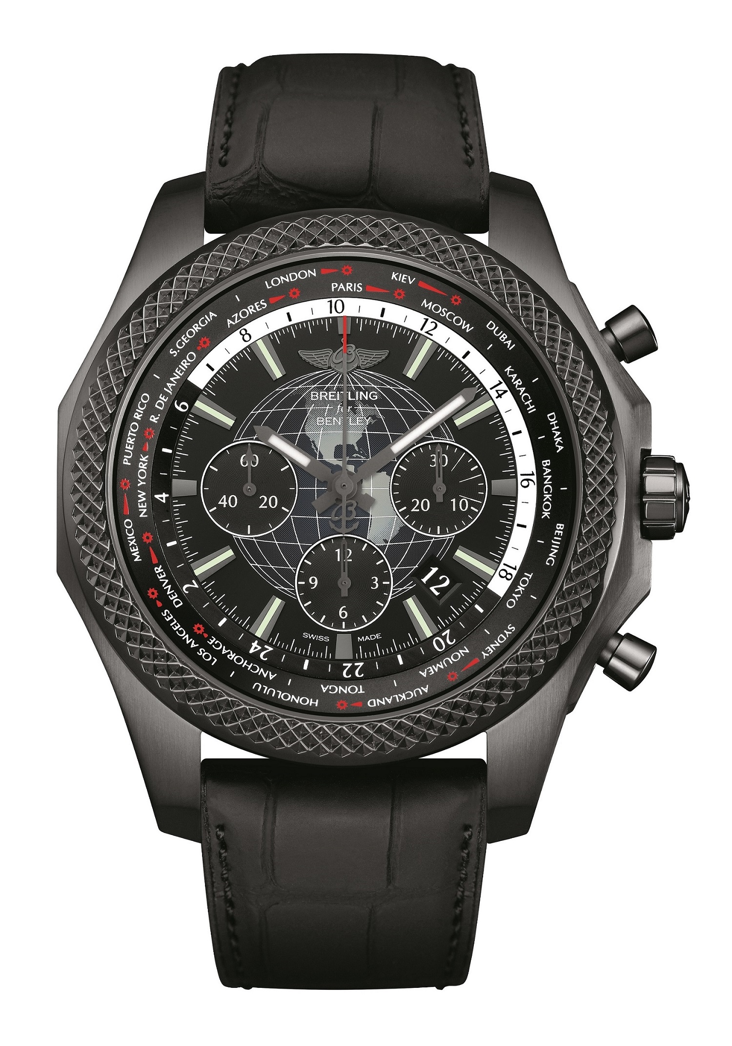 This 500-piece limited series houses the Manufacture Breitling Caliber B05 –featuring a mechanism protected by two patents. The double disk system enables the user to read the time in 24 time zones at a quick glance. For optimal ease, when the user changes time zones, a simple turn of the crown forward or backward in one-hour increments corrects all of the indications in one smooth movement, including automatic adjustment of the date without any loss of precision. The self-winding movement also offers a 24-hour disk with a day/night indicator, 24-city disk with indicators that take into account Daylight Savings Time, and calendar modes. The watch is a COSC-certified chronometer.