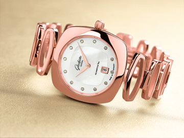 e is a rich tribute to women thanks to the seductive shape and the use of color and diamonds accents. In fact, the sleek and alluring line – created in steel, rose gold and two-tone –runs the gamut from simple unadorned pieces to unusually set diamond pattern on dials and cases. The three-hand date watches are powered by the Caliber 03-01 quartz movement and retails from $4,900 to $39,600.