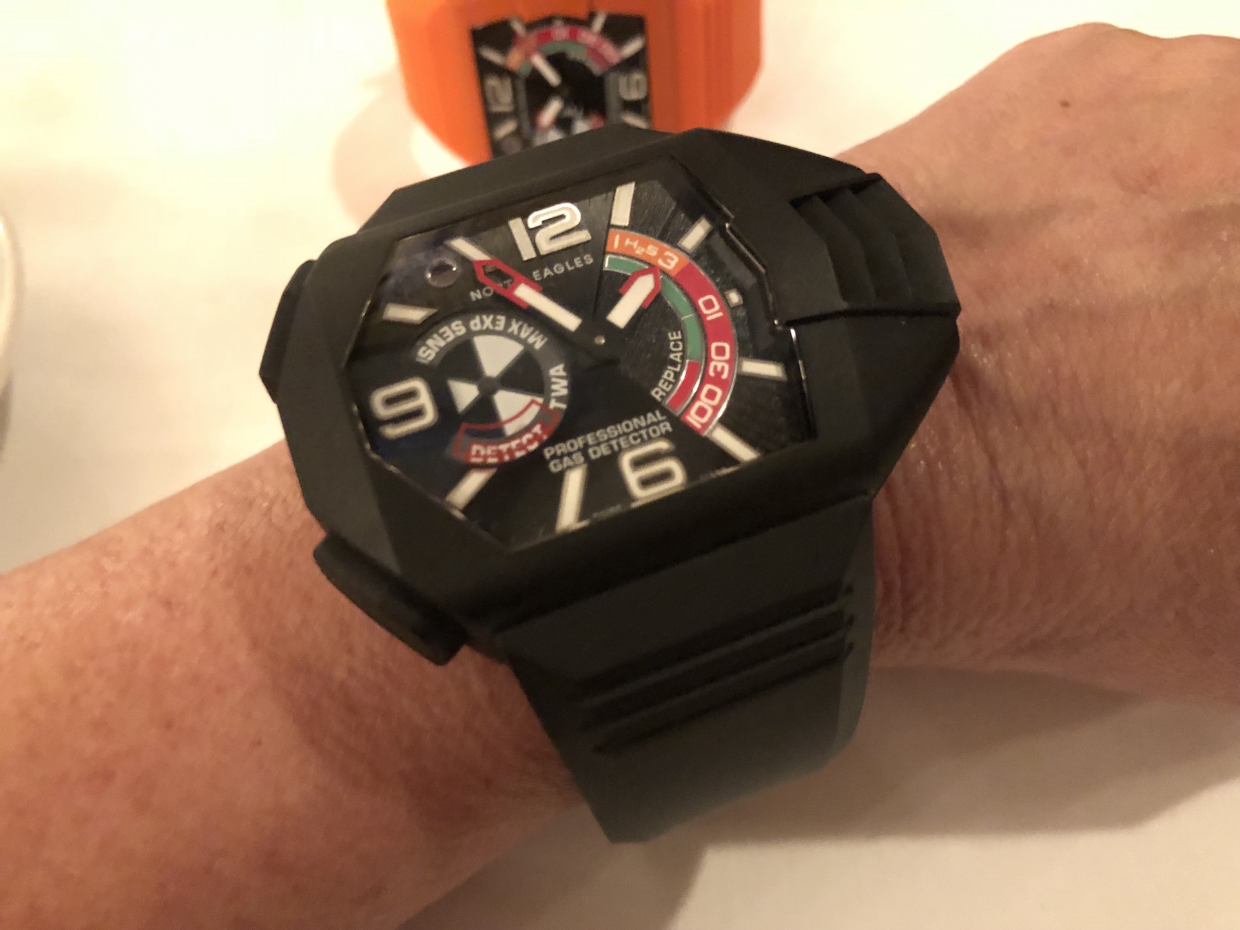 North Eagles H2S Professional Gas Detector watch detects deadly gas and warns the wearer. (Photo: R. Naas)
