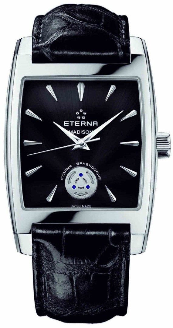 In the past decade, Eterna took the Eterna-Matic concept a step further and unveiled the Eterna Spherodrive ball-bearing-mounted barrel system, which established new standards of quality and longevity. Essentially, the mainspring (which provides the power to the watch) is loaded into a barrel and unwinds throughout the power reserve lifetime of the watch. By mounting the mainspring barrel on zirconium oxide ball bearings, its energy reservoir has a lubricant-free, ultra-efficient delivery via a rolling motion. In addition to extending time between servicing of the watch, the system improves consistent release of power and offers better long-term accuracy.