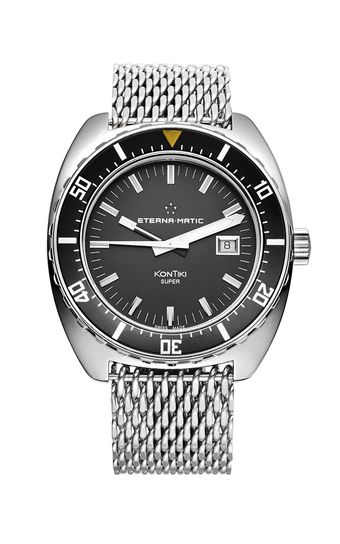 The Eterna-Matic caliber essentially featured a ball-bearing mounted rotor system to reduce friction. Five strategically placed ball bearings reduced friction and resistance on the oscillating weight that winds the mainspring and increased the watch’s accuracy. Eterna was the first to utilize such a revolutionary system … a concept that later became implemented by other brands. The Eterna-Matic movement is still used in certain watches today, including the Eterna-Matic Super Kon Tiki watch. Kon Tiki, named for the famous 1947 expedition, is an iconic line for the brand.