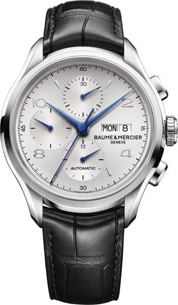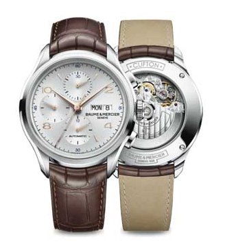 chronograph offers day/date indication and features sapphire caseback for viewing the self-winding mechanical ETA 7750 movement. The three versions include one with blue hands and a black alligator strap, one with rose-gold hued hands and digits on a stainless steel bracelet, and a similar model offered on a brown alligator strap. The strap versions sell for $3,900, while the bracelet model retails for $4,200. Like all Baume & Mercier timepieces, the value to quality ratio is superb and these watches warrant an up-close and personal look.