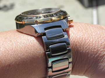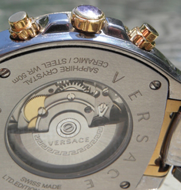 The performance of this watch — which I wore swimming and horseback riding – is top notch. The look of the two-tone version we are reviewing fit nicely from sporty weekend to business meetings and even out at night. While the power reserve is slightly shorter than I’d like – because I’d like power reserve to be at least 8 days — this is a watch I keep coming back to, for sport, for dress, for everyday. The best part of the mechanical and technically advanced Versace winner – the price: $5,495.