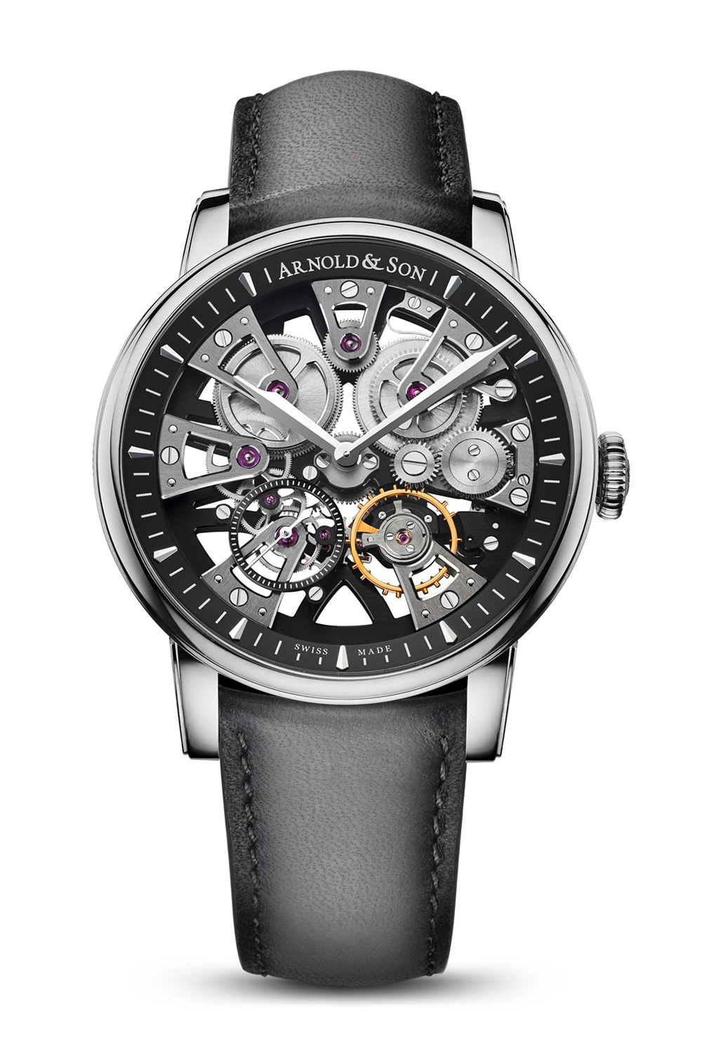The skeletonized work leaves all of the most interesting and technical aspects of the watch viewable from the front side of the watch, but like many television commercials, there’s the “wait, there’s more” aspect. Turning the watch over reveals another view of the superlatively hand-finished movement, with skeletonized and chamfered main plate with polished edges, solid 18-karat gold chatons and gears featuring polished chamfers. The Nebula comes in a contemporary 41.50mm case and is delivered in either a 5N rose gold model for $25,750, or in a stainless steel version for $14,500.