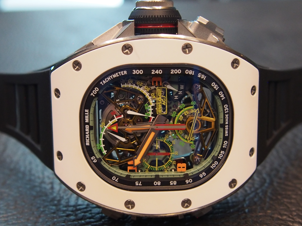 The RM50-02 is shaped like the ACJ plane windows and the bezel is made of a special alloy that is used on the propellers of the plane