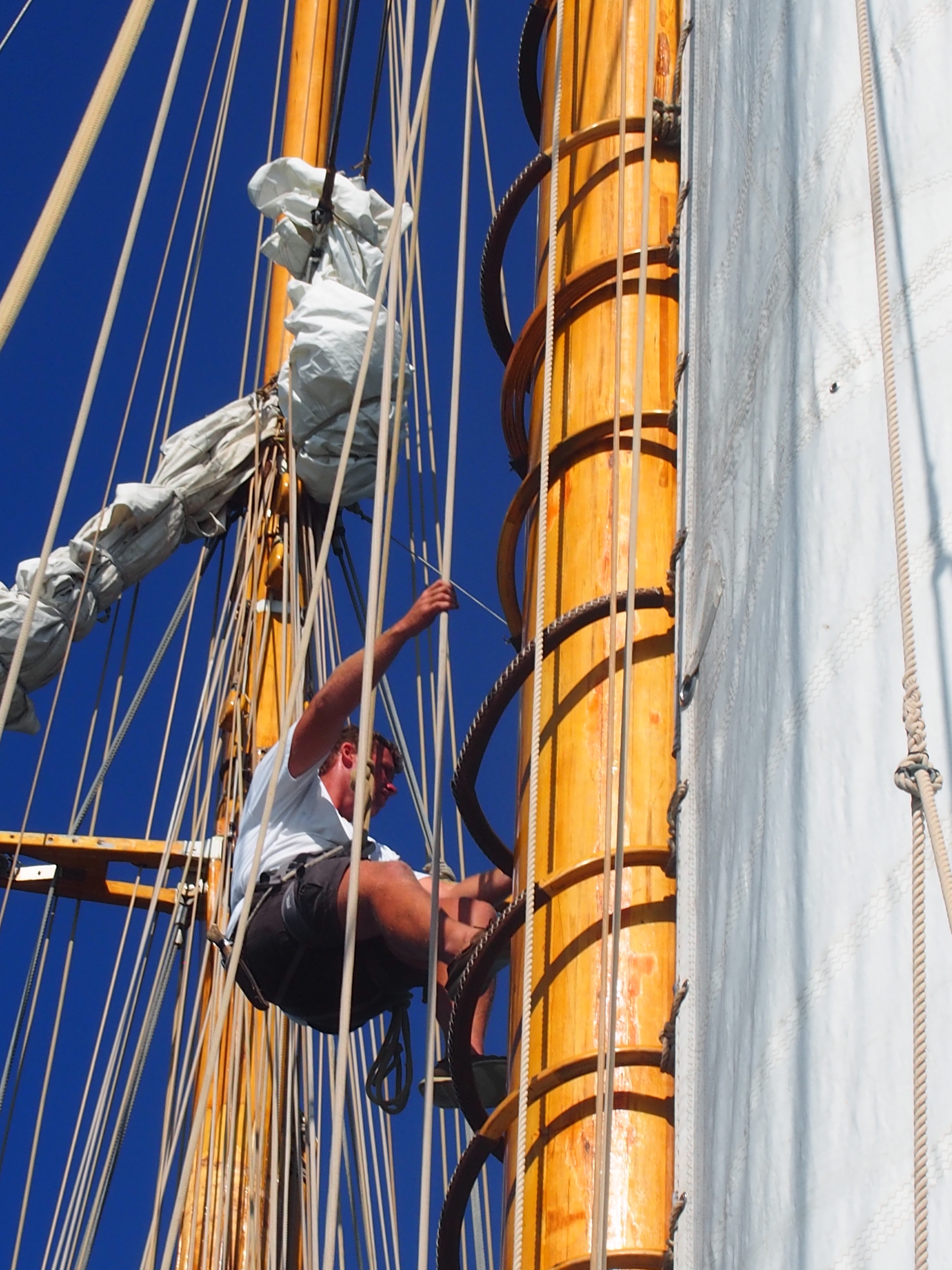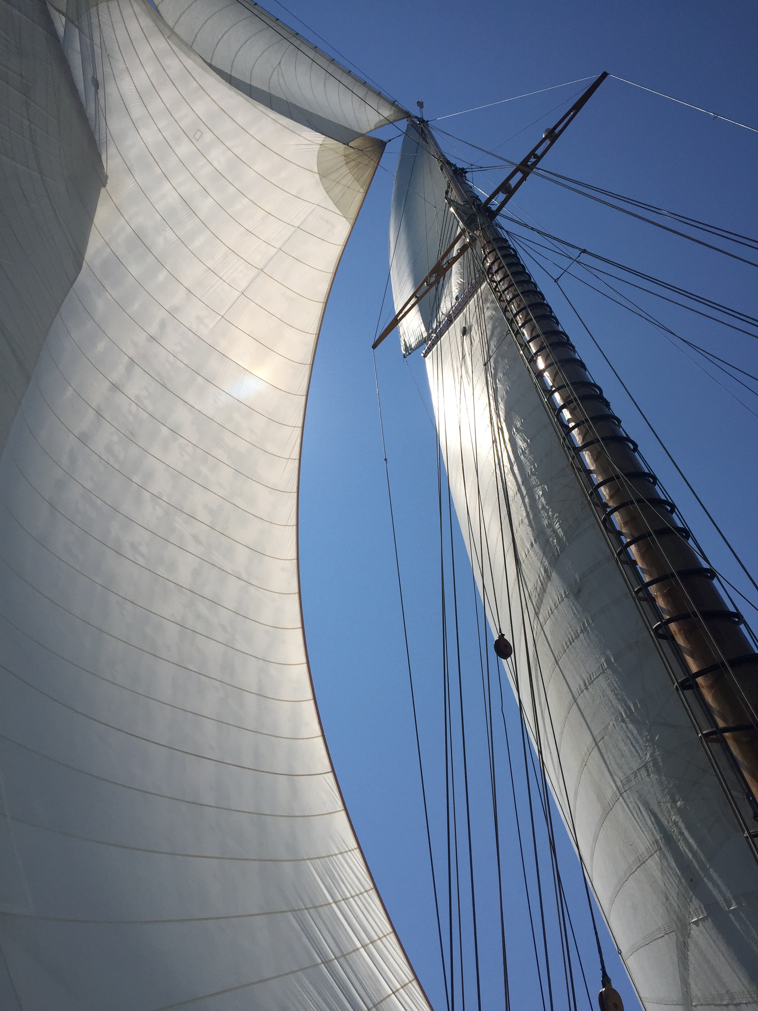 For this day’s race, I was aboard the Eleonora — the largest schooner on the water. Eleonora was docked out in the harbor, as she was too large to sail into the marina. As such, our day started much earlier than other racers, because we had to take a boat out to the Eleonora and because she is so large, with so many sails that the preparation work for the sailors is incredibly time consuming. As such, even though the race was only about 2-1/2 hours (for us to complete), we were on the water just about nine hours in total.