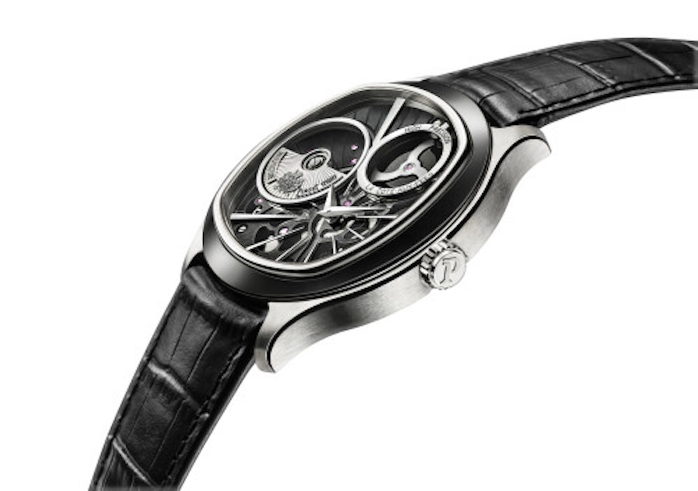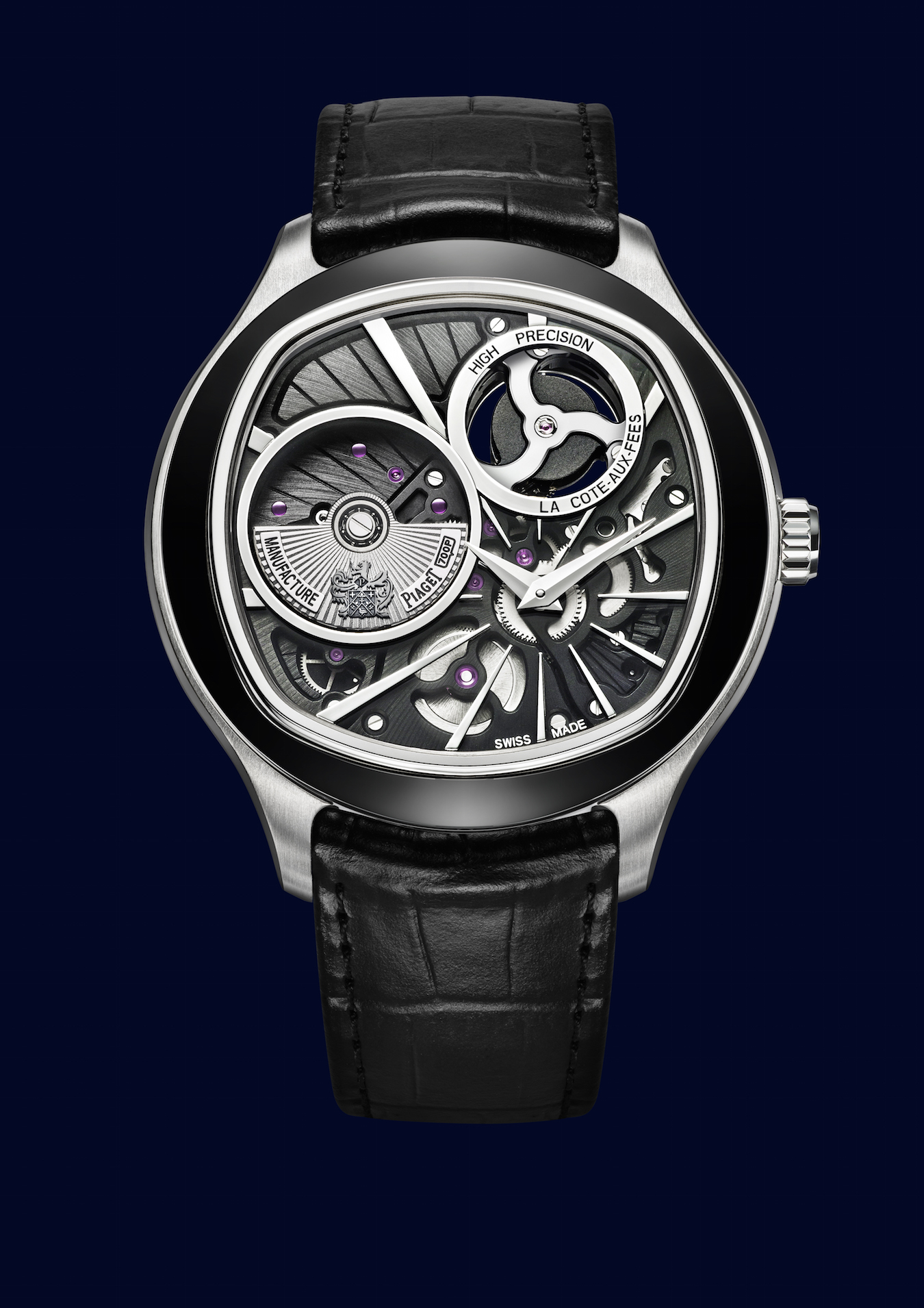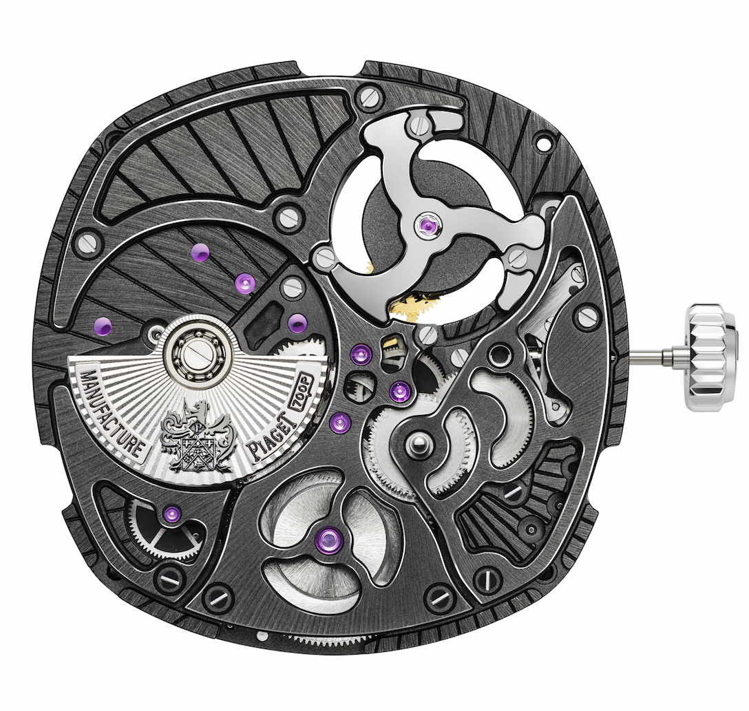 The micro-rotor is adorned with the Piaget coat of arms and the watch features chamfered bridges, circular stain-brushed wheels and silver-toned screws against a deep-black motif. The 18-karat gold bezel is black ADLC-coated for a stealth appeal. Just 118 pieces will be built.