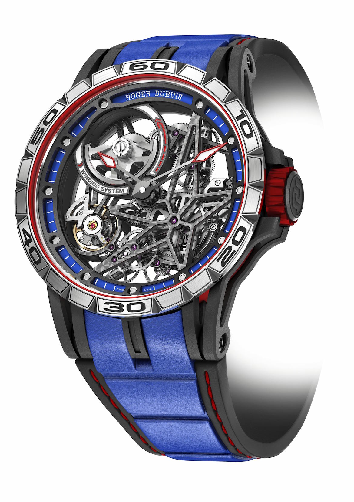 Roger Dubuis Excalibur Spider Skeleton Automatic is inspired by auto racing in color and skeletonization in design.