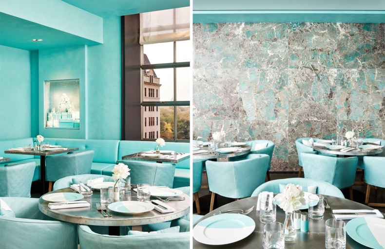 If you opt to go check out this creatively modern secret watch, you should do so at the New York flagship store and treat yourself to breakfast at Tiffany. Recalling the famed 1961 movie, “Breakfast at Tiffany’s” wherein Audrey Hepburn as Holly Golightly who would gaze from longingly into the Tiffany & Co. windows with her coffee and croissant in hand, Tiffany & Co has now opened a cafe on the fourth floor of its flagship Fifth Avenue store. Called The Blue Box Café, the the décor of the restaurant is, of course, finished in the brand’s well-known robin’s egg blue signature color.
