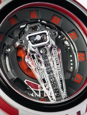 Glass hand and innovative ring system for indicating the hours inside the Ulysse Nardin Innovation 2 concept watch.