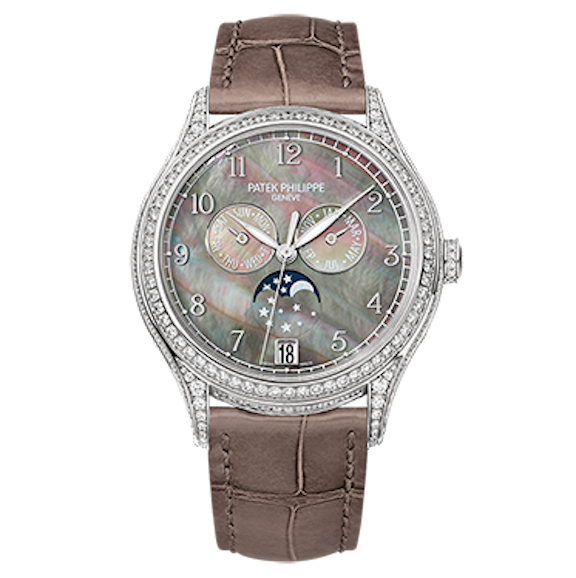 These watches met with considerable success, spurring even more interest on the part of leading brands, like Patek Philippe, Jaeger-LeCoultre, Girard-Perregaux, and Ulysse Nardin, to create discrete collections for women that went beyond the razzle-dazzle. Jaeger-LeCoultre’s Rendez-Vous line, one of the first collections of note made specifically for women, now includes complications such as a moon-phase indicator, a tourbillon (an added escapement that compensates for errors in timekeeping due to the effects of gravity), and even a minute repeater. A highly coveted complication in the men’s market, a minute repeater chimes the hours, quarter hours, and minutes on demand and is one of the most sophisticated movements made— complete with tiny hammers and gongs to achieve the melodious modes.